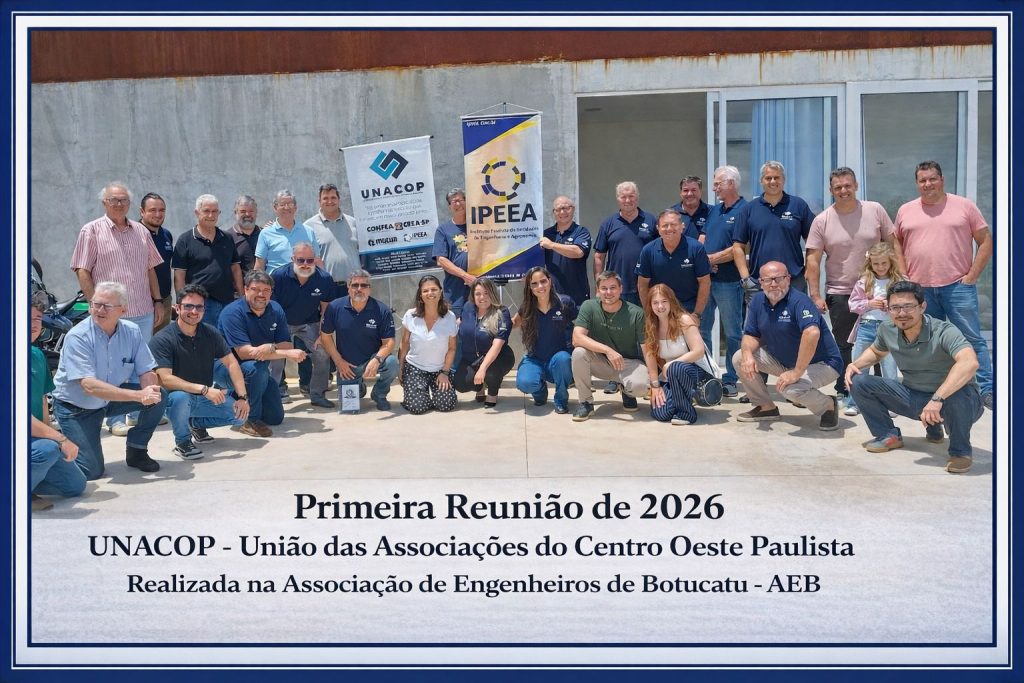 A Associação de Engenharia de Botucatu – AEABOTUCATU sediou no dia 24 de janeiro passado, a primeira reunião de 2026 da UNACOP – União das Associações do Centro Oeste Paulista.