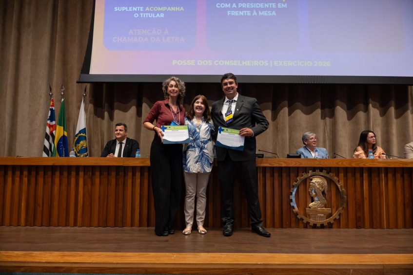 Nesta quarta-feira, 14 de janeiro, o Crea-SP realizou sua tradicional cerimônia anual de renovação de um terço dos conselheiros para o triênio 2026-2028, além da nomeação da nova diretoria, com vigência até a Sessão Plenária de Posse em janeiro de 2027. Outro destaque foi a composição dos conselheiros nomeados para a Câmara Especializada de Engenharia Ambiental e Sanitária (CEEAS), que entra em operação este ano.
