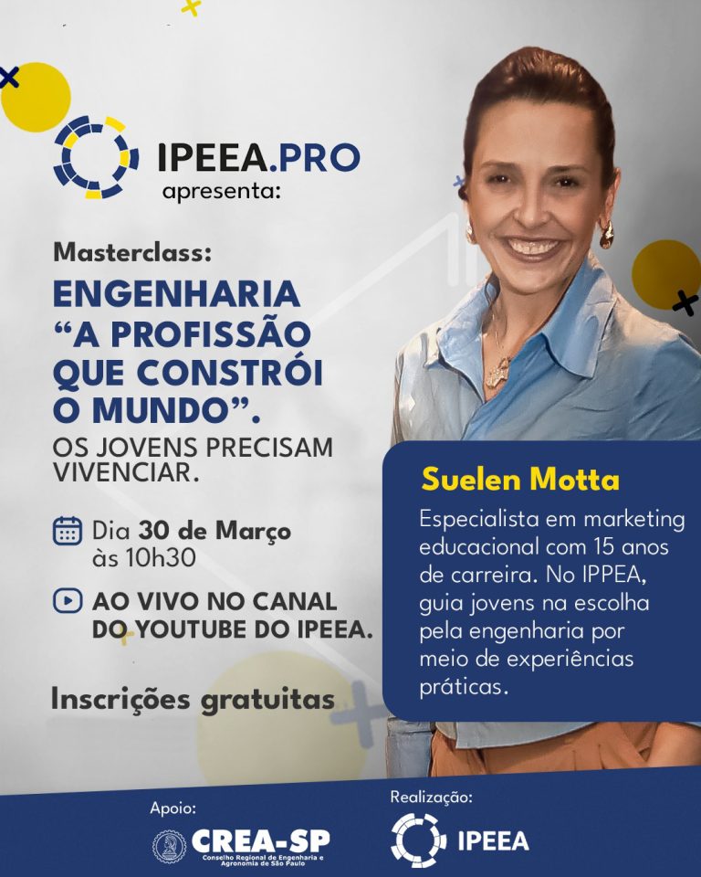 IPEEA.PRO apresenta: Masterclass Engenharia “a profissão que constrói o mundo”. Os jovens precisam vivenciar.